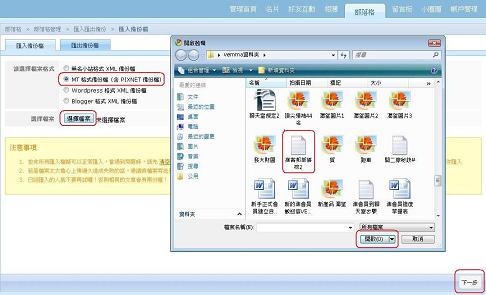 03. 請點 " 匯入的MT檔 " ,再點 " 選擇檔案 ",選擇" 痞客邦部落格資料" 點2下匯入,再按右下角的 " 下一步 " ,就完成了^^